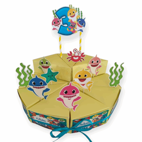 Χειροποίητη χάρτινη τούρτα με θέμα Baby shark (κίτρινο χρώμα)!